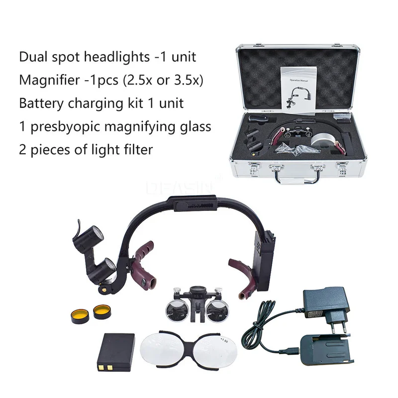This professional tool is designed to improve visibility and precision for dental, surgical, and medical procedures. It features high-quality optical lenses for enhanced magnification and a powerful 5W LED headlight for bright, focused lighting. The adjustable headband provides a secure and comfortable fit, even during long procedures.