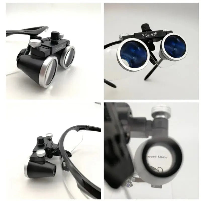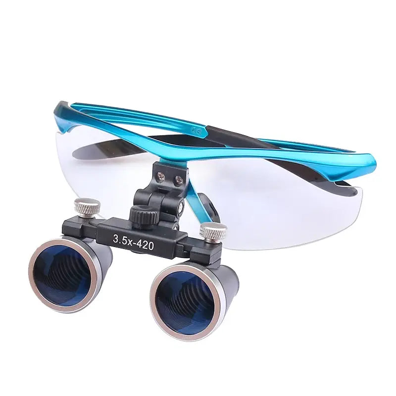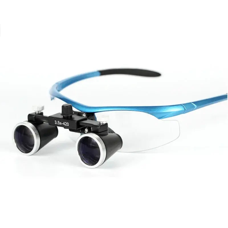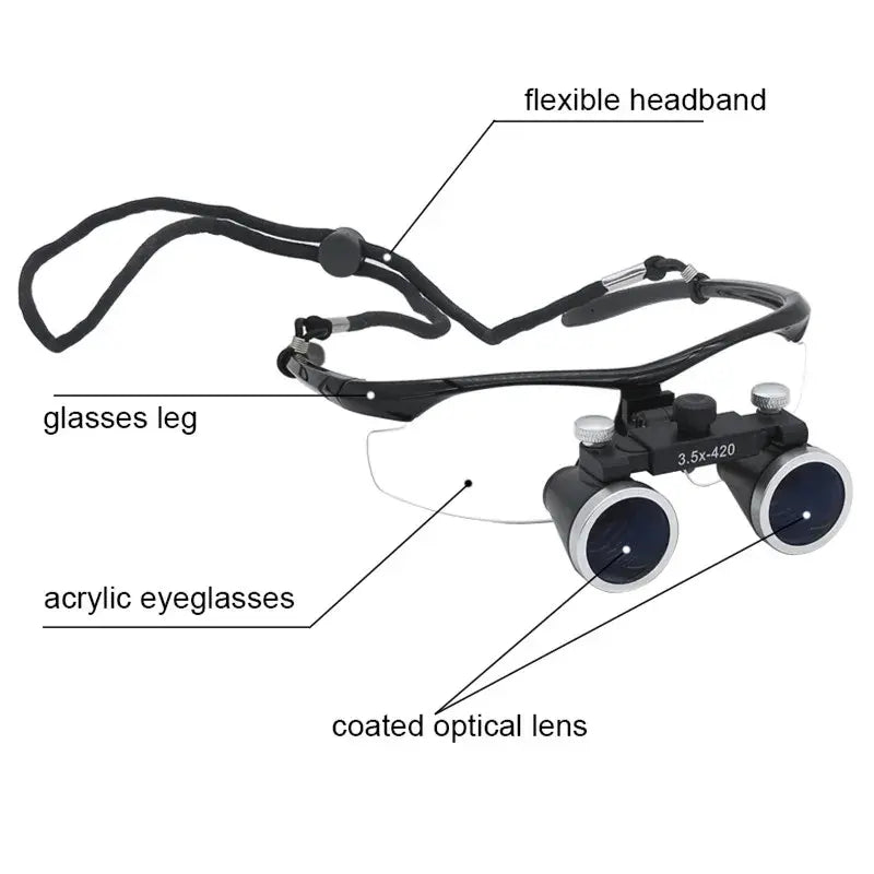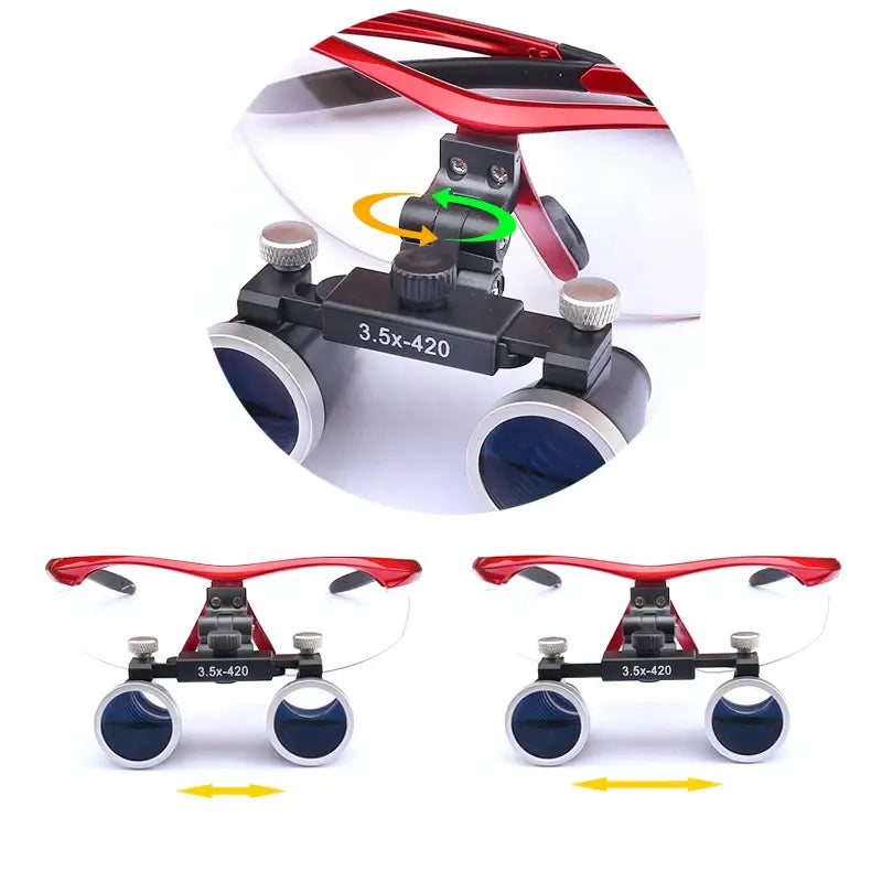 The Magnification Binocular Loupes 2.5X/3.5X with 320-420mm Working Distance are essential tools for dental professionals who demand exceptional clarity and precision. Featuring optical glass lenses, these loupes deliver distortion-free magnification with options of 2.5X and 3.5X, providing a clear, sharp view of intricate details. The impressive depth of view (90mm/80mm) and field of view (100mm/60mm) ensure an optimal working range, making them ideal for procedures such as restorations, surgeries, and inspections.
