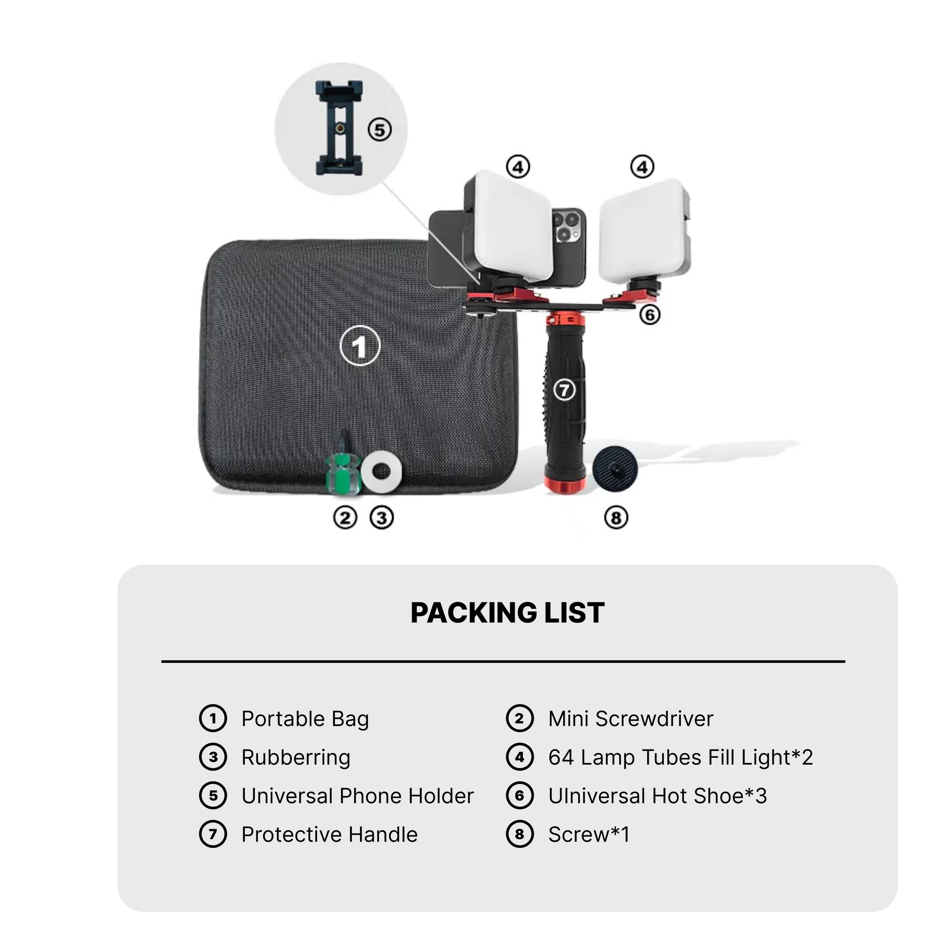 This package includes the Twin Light system, along with a macro lens for capturing detailed close-up shots and a CPL filter to minimize glare for crisp, clear images. Both the lens and filter are universally compatible with all mobile phones, making it easy to upgrade your photography setup without the need for extra equipment