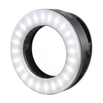 Compact and portable, the ring light includes a long-lasting battery that provides up to 2 hours of illumination on maximum brightness after just a 90-minute charge.